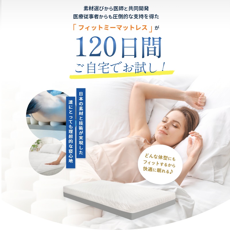 お客様に自宅で実際に試してもらうことを重視して、フィットミーマットレスプレミアムは120日間のフリートライアルを提供しています。この期間中にマットレスが身体に合わないと感じた場合、返品および全額返金が可能です。