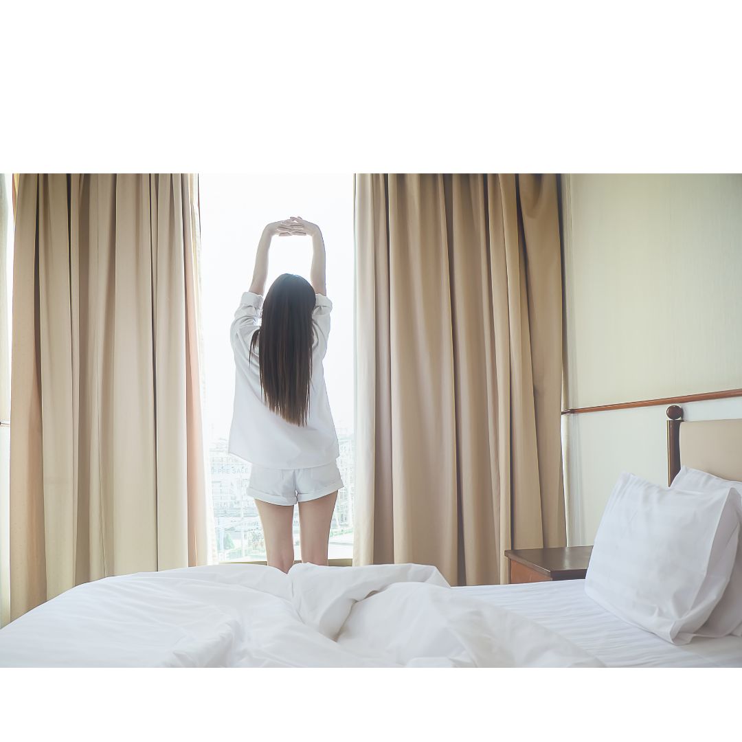 - 遮光カーテンを使い、自然光で目覚められる環境を作る