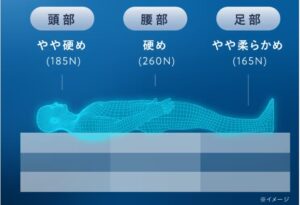 マットレスの異なる部分で硬さが変わるのは、体のそれぞれの部分が必要とするサポートを提供するためです。例えば、腰はしっかり支えられ、足は少し柔らかく感じるでしょう。これにより、全体として理想的な寝姿勢を保ちやすくなります。