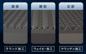 このマットレスは腰の部分が特に考えられて作られています。腰部には超高反発ウレタンが使われており、長時間寝ていても腰が痛くなりにくい設計です。これは、腰痛に悩む人にとって、とてもありがたい配慮ですね。
